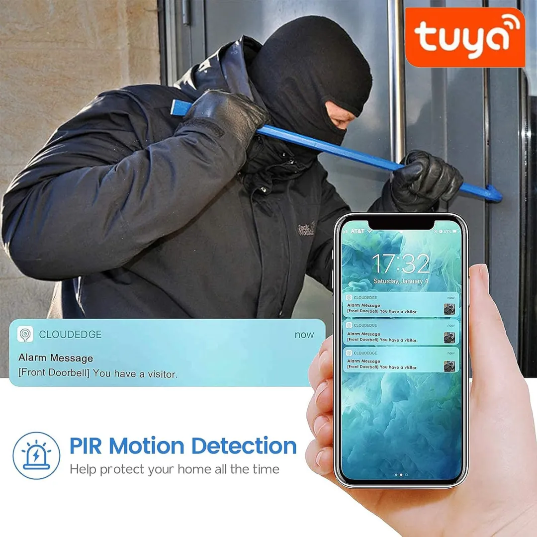 This video doorbell is designed for use at the front door of your home and provides a solid level of protection against daily factors such as dust and light moisture. The sturdy construction effectively safeguards the internal components, ensuring the doorbell functions reliably over time with minimal maintenance.
